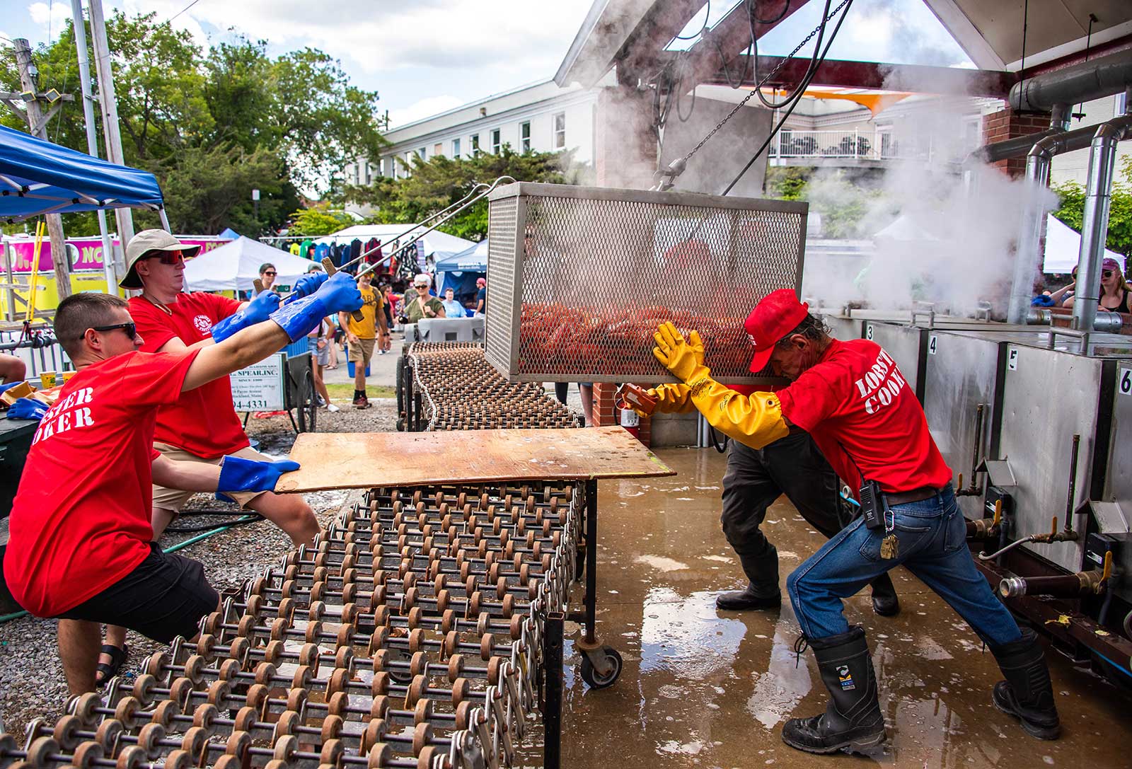 Lobsters are cooked in 100-pound batches, then transported directly to the Main Eating Tent, piping hot and ready to enjoy. The result? Faster service, shorter lines, and more happy festival goers.